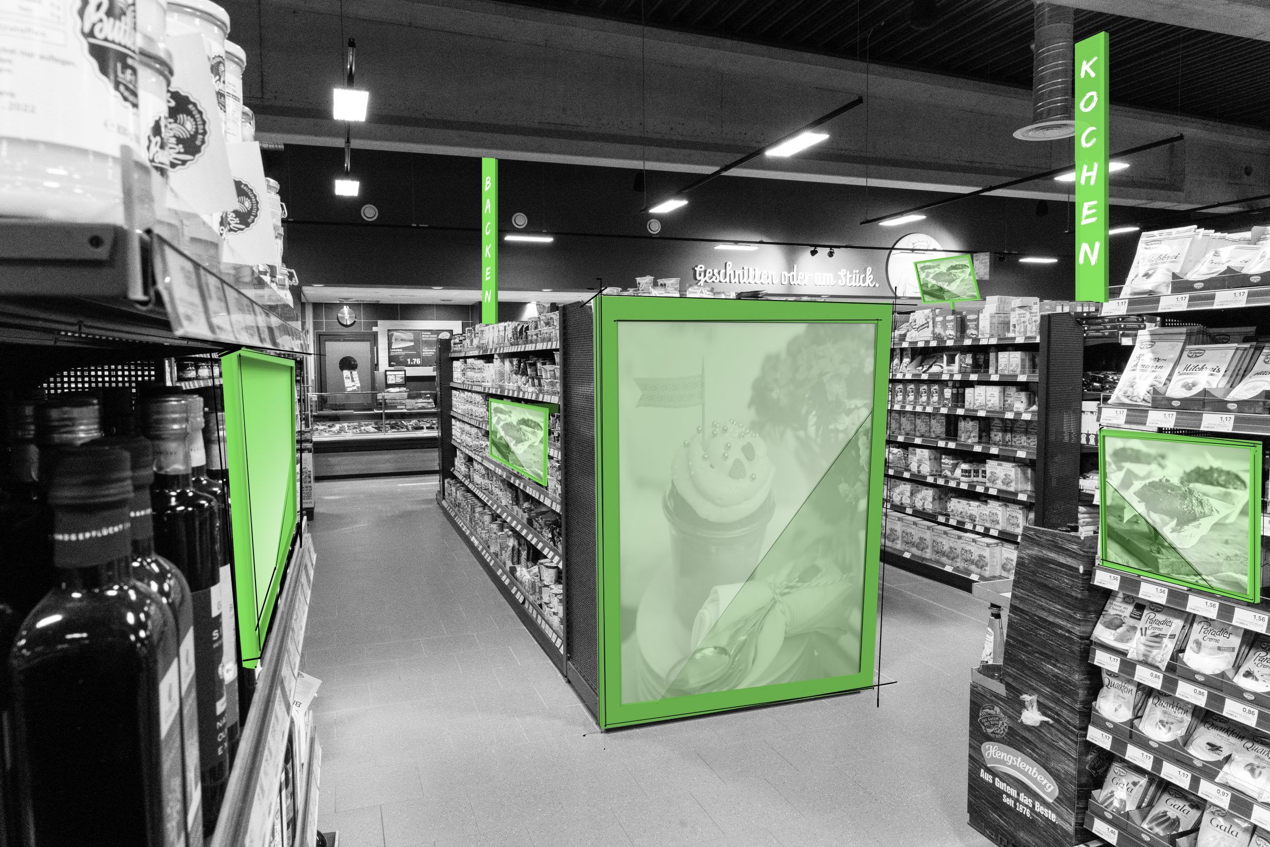 Sie haben einen großen Markt, mit langen Gängen und wollen ihre Verkaufsfläche besser segmentieren? Strukturieren Sie ihr Warenangebot mit Trennblechen in intelligenten Größen und Formen. Der Kunde findet durch bessere Orientierung seine Ware schneller und wird auf dem Weg dort hin, von weiteren Kaufanreizen inspiriert. Durch Highlightwände und Vitrinen vermitteln Sie gezielt Wertigkeit und gewinnen an Aufmerksamkeit.